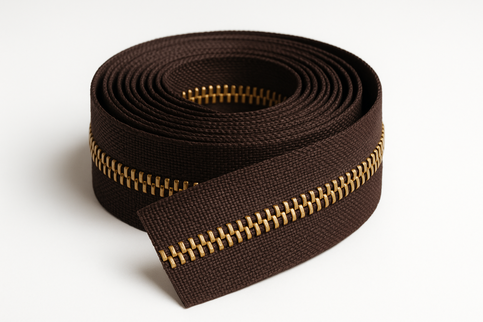 Five Yard bundles with Dark Brown Zipper Tape with polished Antique Brass/Bronze Teeth are currently only available in the following options: